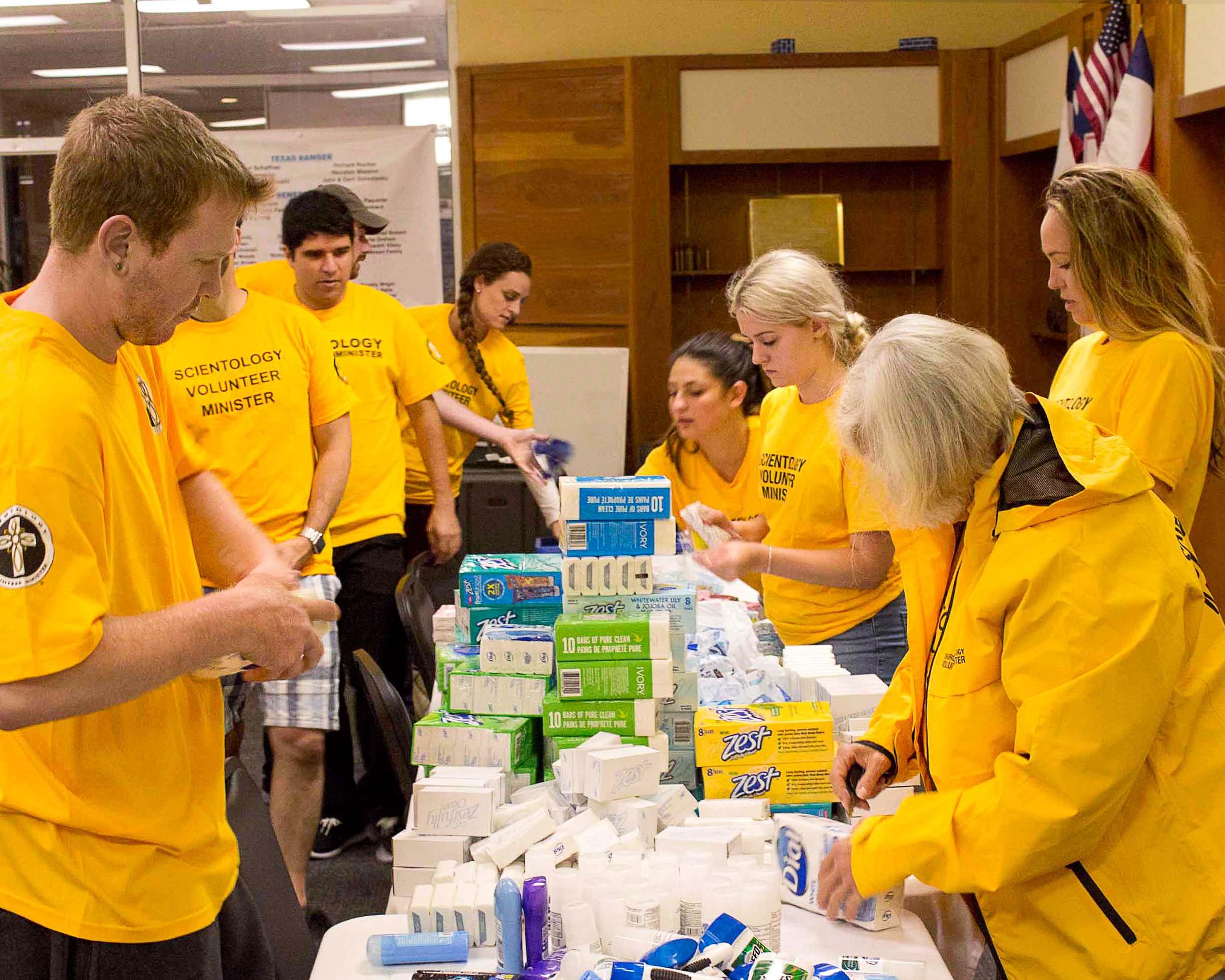 Nel giro di poche ore dall’arrivo dell’uragano Harvey i VM da tutta l’America hanno risposto all’appello. La Chiesa di Scientology di Austin è diventata il punto centrale di coordinazione dal quale far partire forniture e volontari per le varie attività, dalla distribuzione di lenzuola alla pulizia delle case. I VM hanno dato assistenza a tutte le aree colpite, sia alle vittime che ai soccorritori.