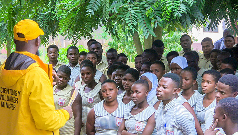 Le nostre Campagne di Benevolenza dei Ministri Volontari visitano luoghi che, altrimenti, non avrebbero accesso agli strumenti pratici contenuti nei 19 corsi del Manuale di Scientology. Ogni località riceve il servizio adatto alle sue specifiche esigenze. Nel caso del Tour di Benevolenza nel Ghana, si tratta dell’istruzione.